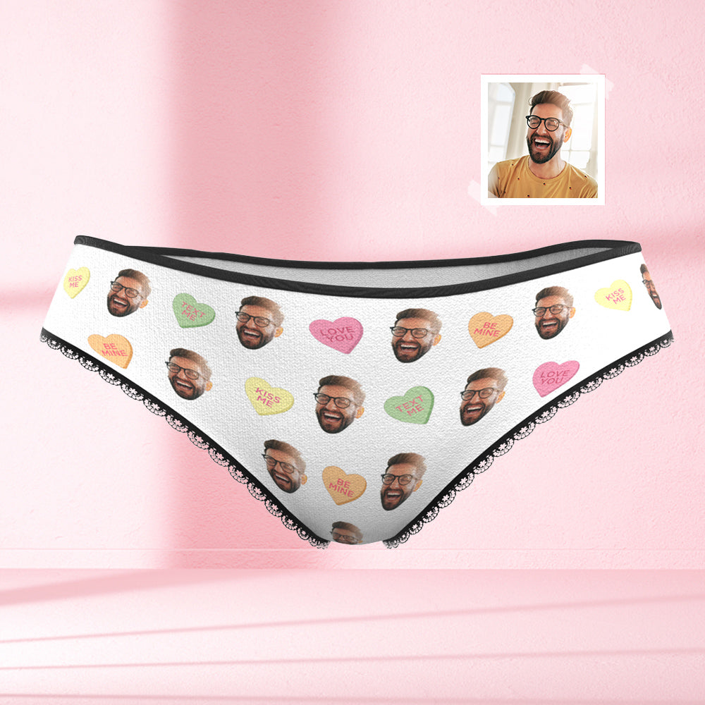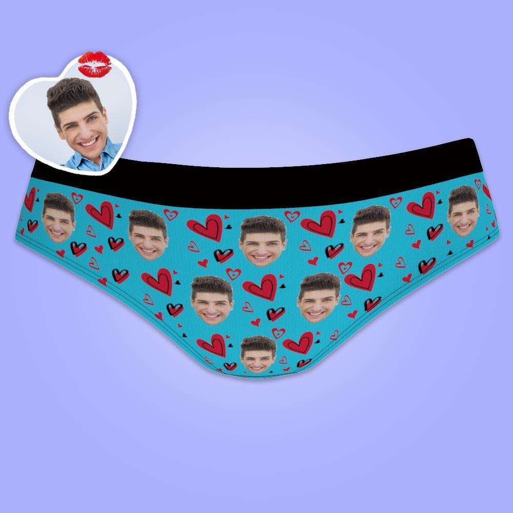 Custom Women's Panties All Over Print Face Photo With Hearts