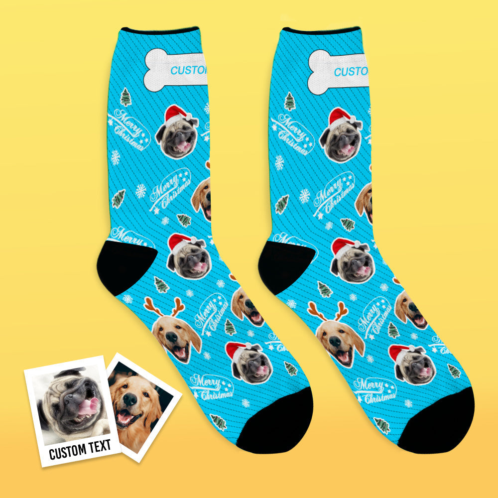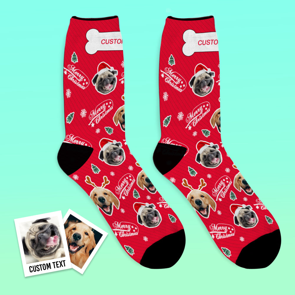 Custom Photo Socks Merry Christmas Dog With Your Text