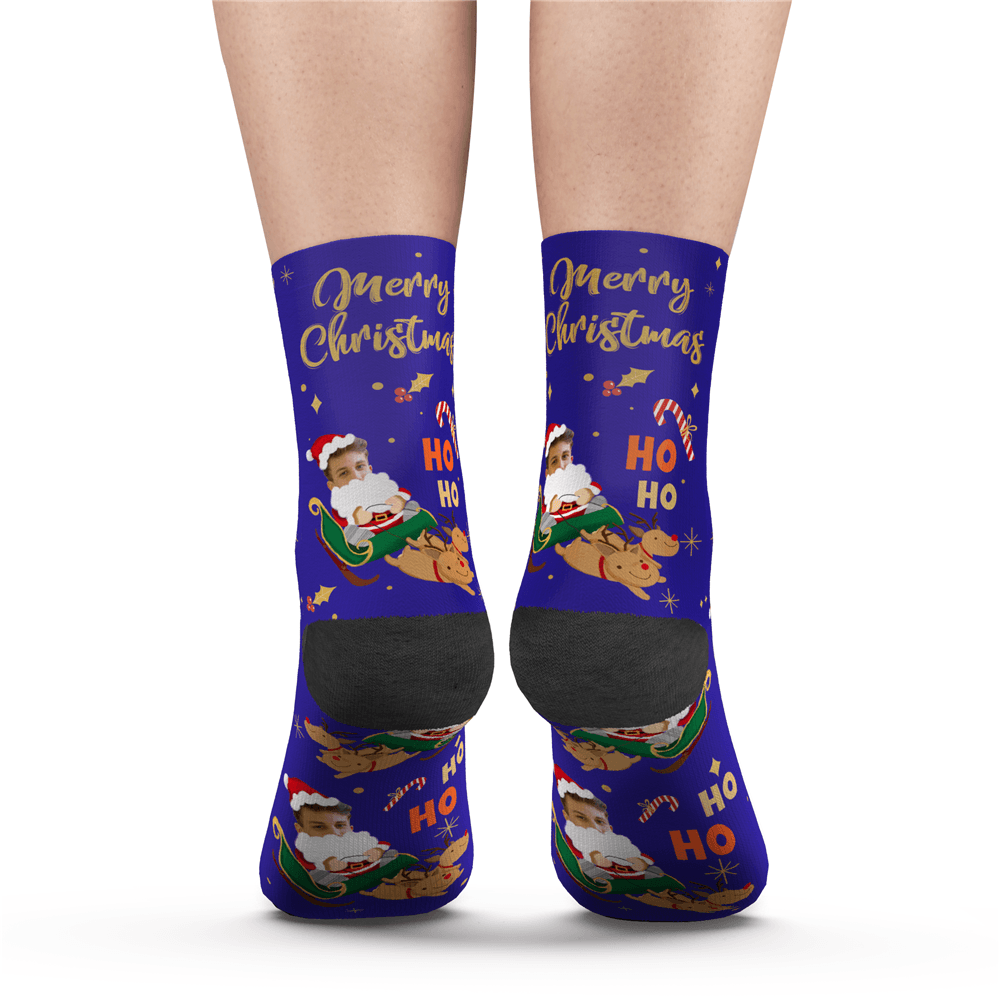Custom Photo Socks Santa Claus Sled Socks With Your Text
