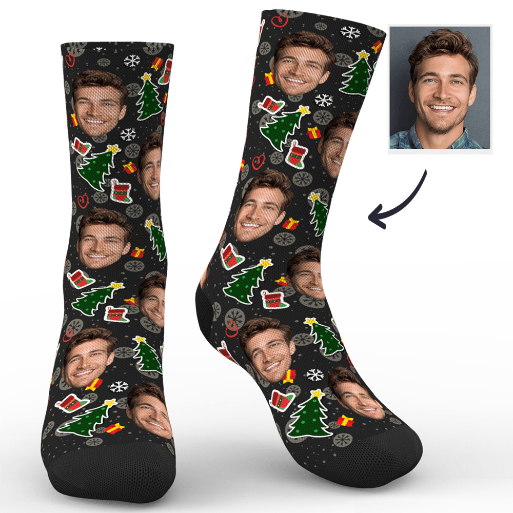 Custom Photo Socks Christmas Tree Hero With Your Text