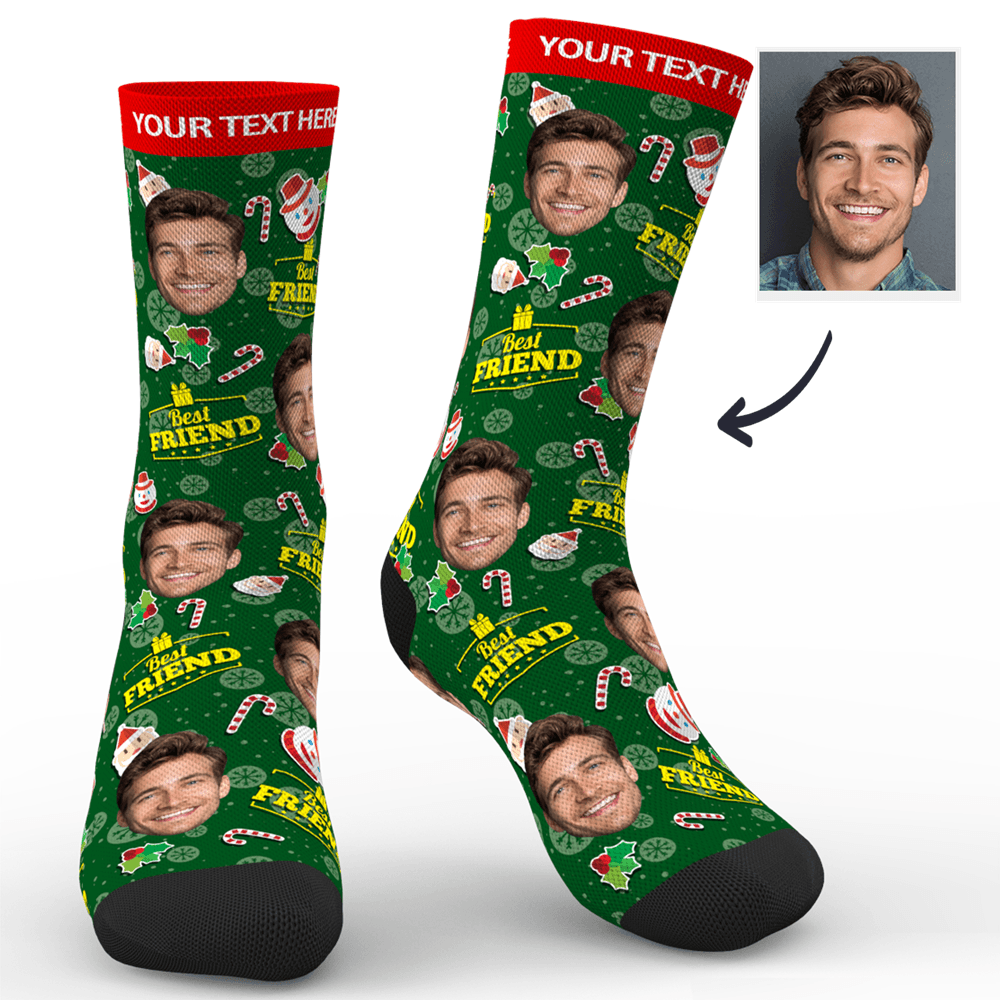 Custom Photo Socks Christmas Best Friends With Your Text