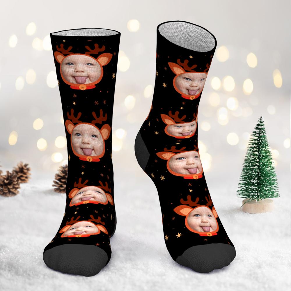 Custom Photo Socks Christmas Fawn Face Socks