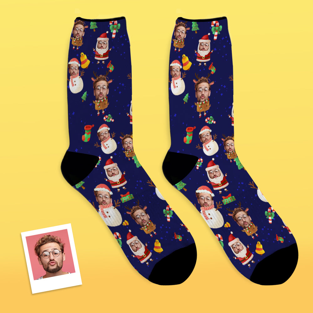 Custom Photo Socks Santa claus and Snowman Personalized Christmas Reindeer Face Socks