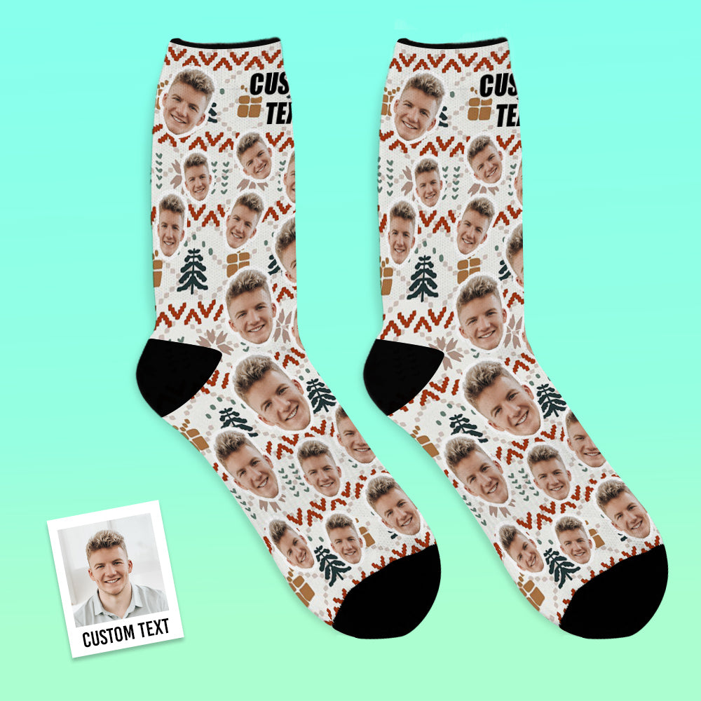 Custom Photo Socks Christmas Socks Christmas Knitted Pattern Design Holiday Socks