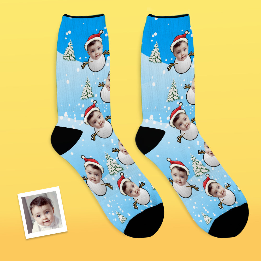 Custom Photo Socks Christmas Snowman Socks With Your Text