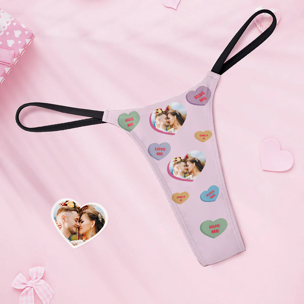 • Custom Thongs Photo Panties Funny Underwear Briefs Hug MINE Thong Valentine Gift