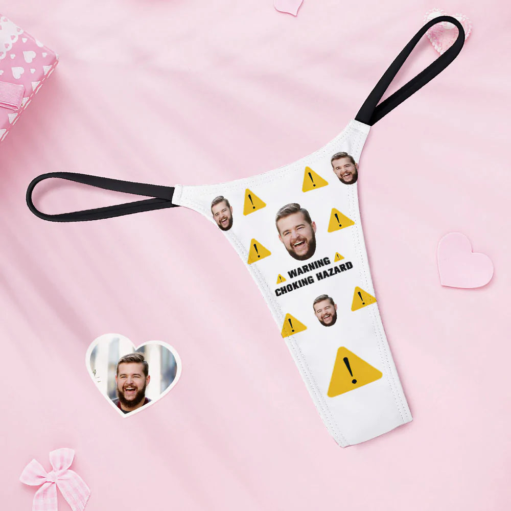 Custom Face Women's Tanga Thong Choking Hazard Warning Valentine's Day GIft