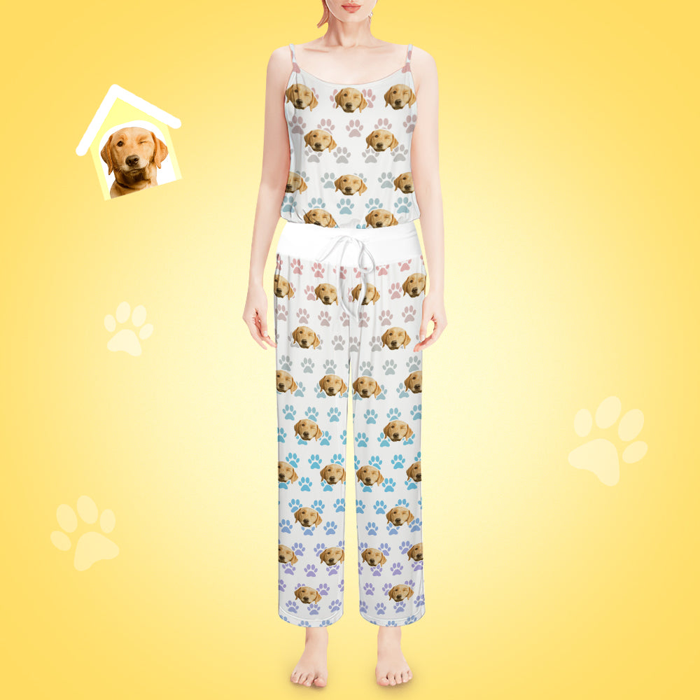 Custom Face Pajama Personalized Dog Paw Print Gradient Loungewear