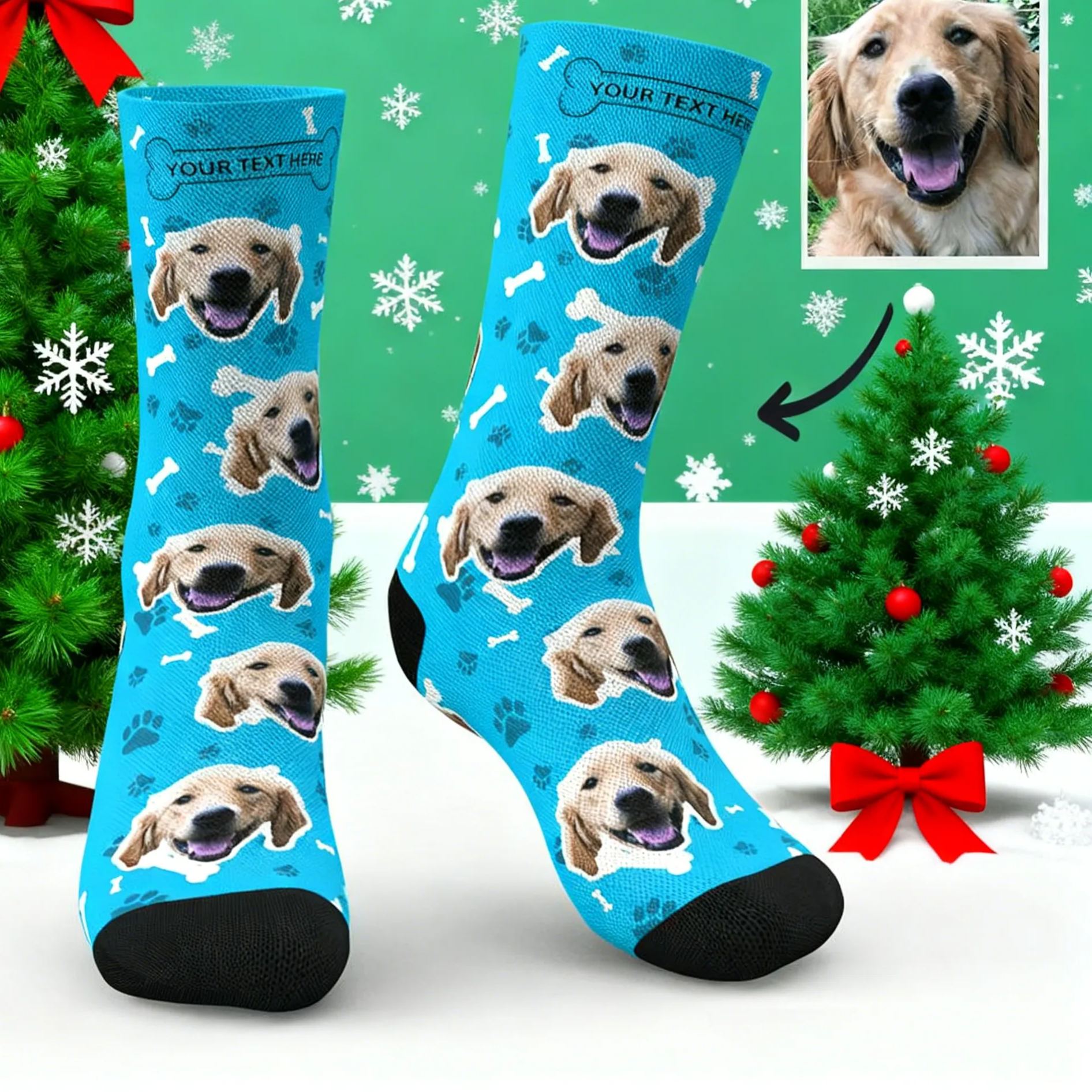 Custom Photo Socks Christmas Dog With Your Text