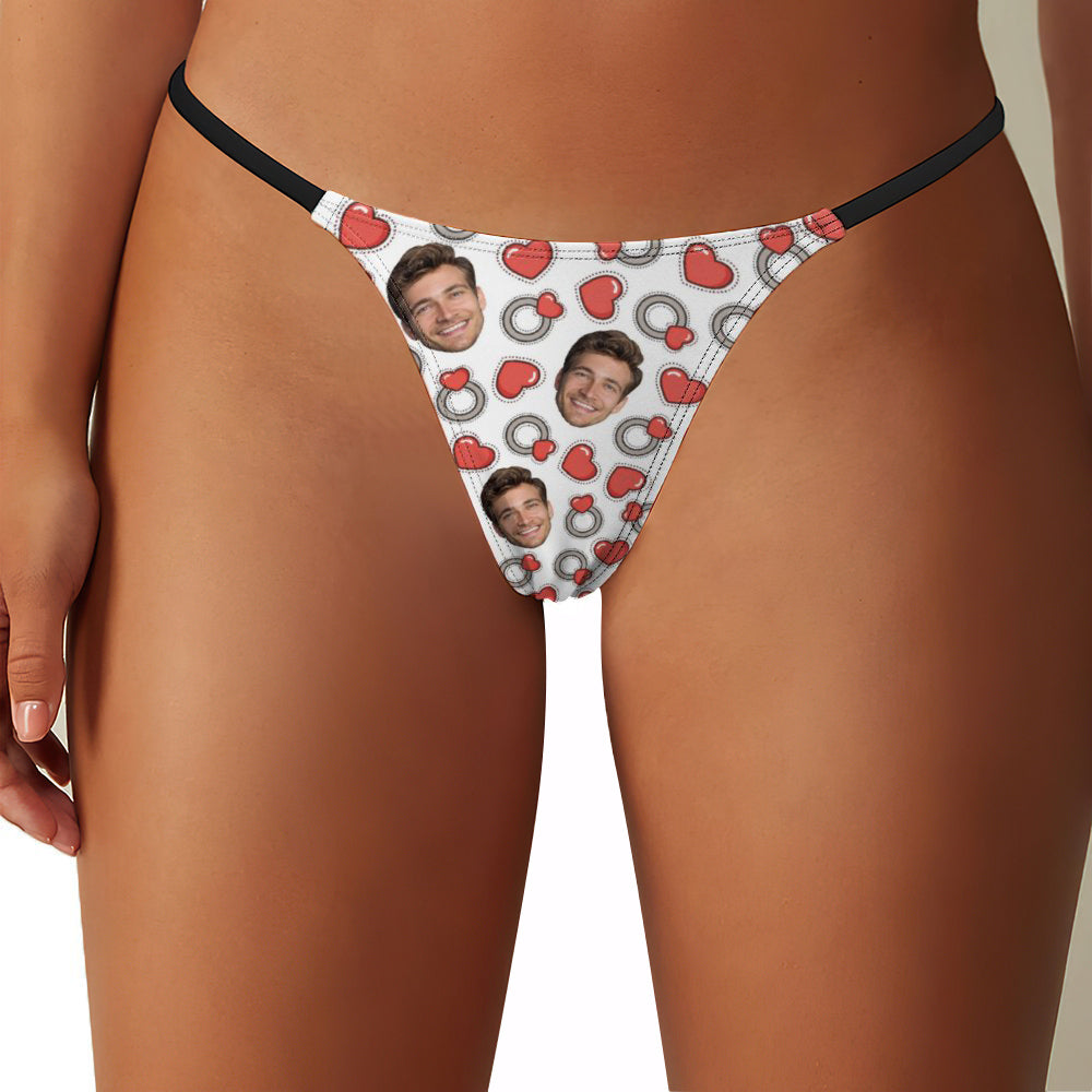 Custom Face Heart Women's Tanga I Love You Women's Novelty Underwear Thong