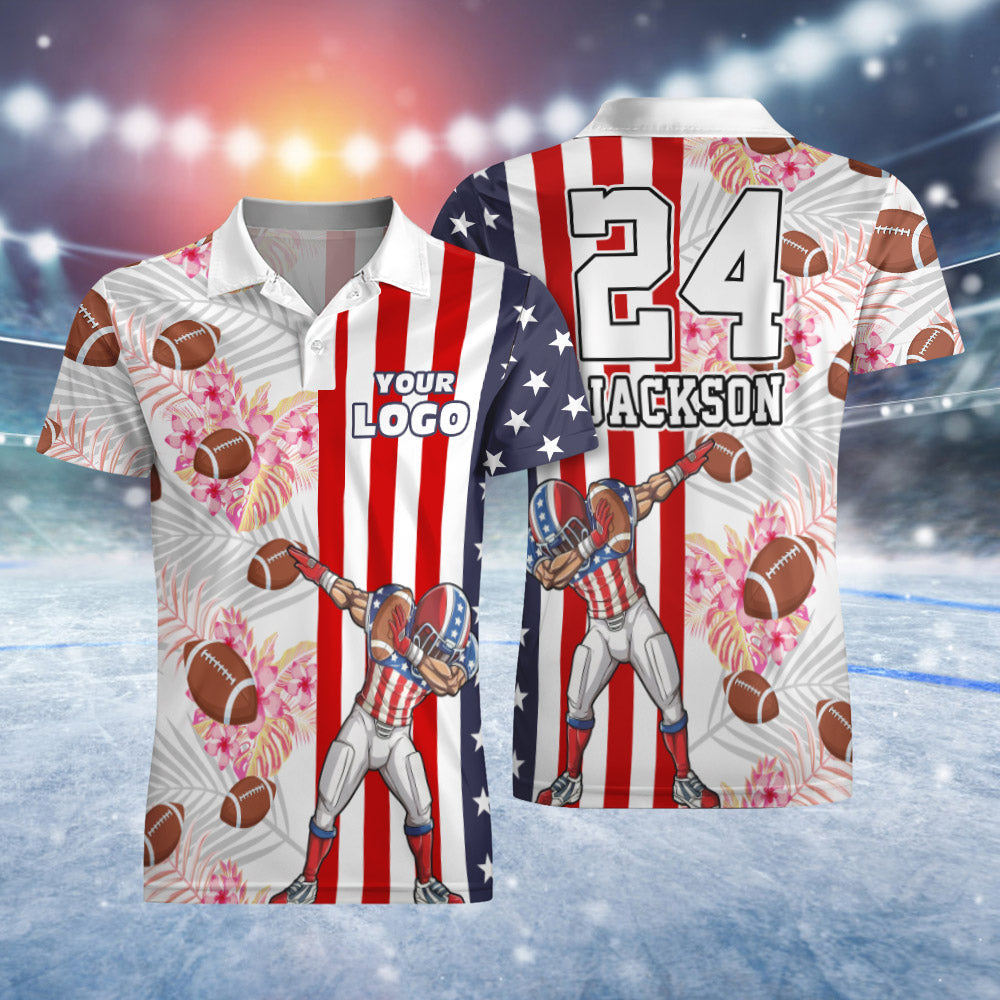 Custom LOGO Number Name Short Sleeve Polo Shirt With Rugby American Flag For Men