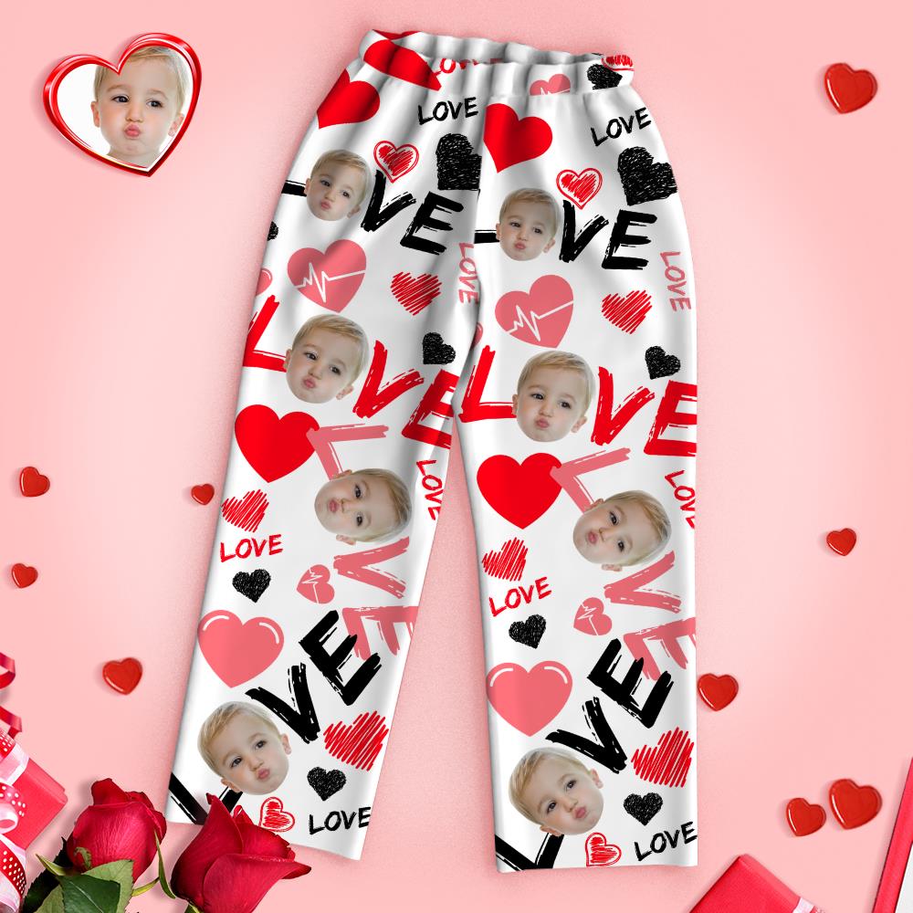 Custom Face Heart Pajamas Long Sleeve Pajamas Love With Your Face