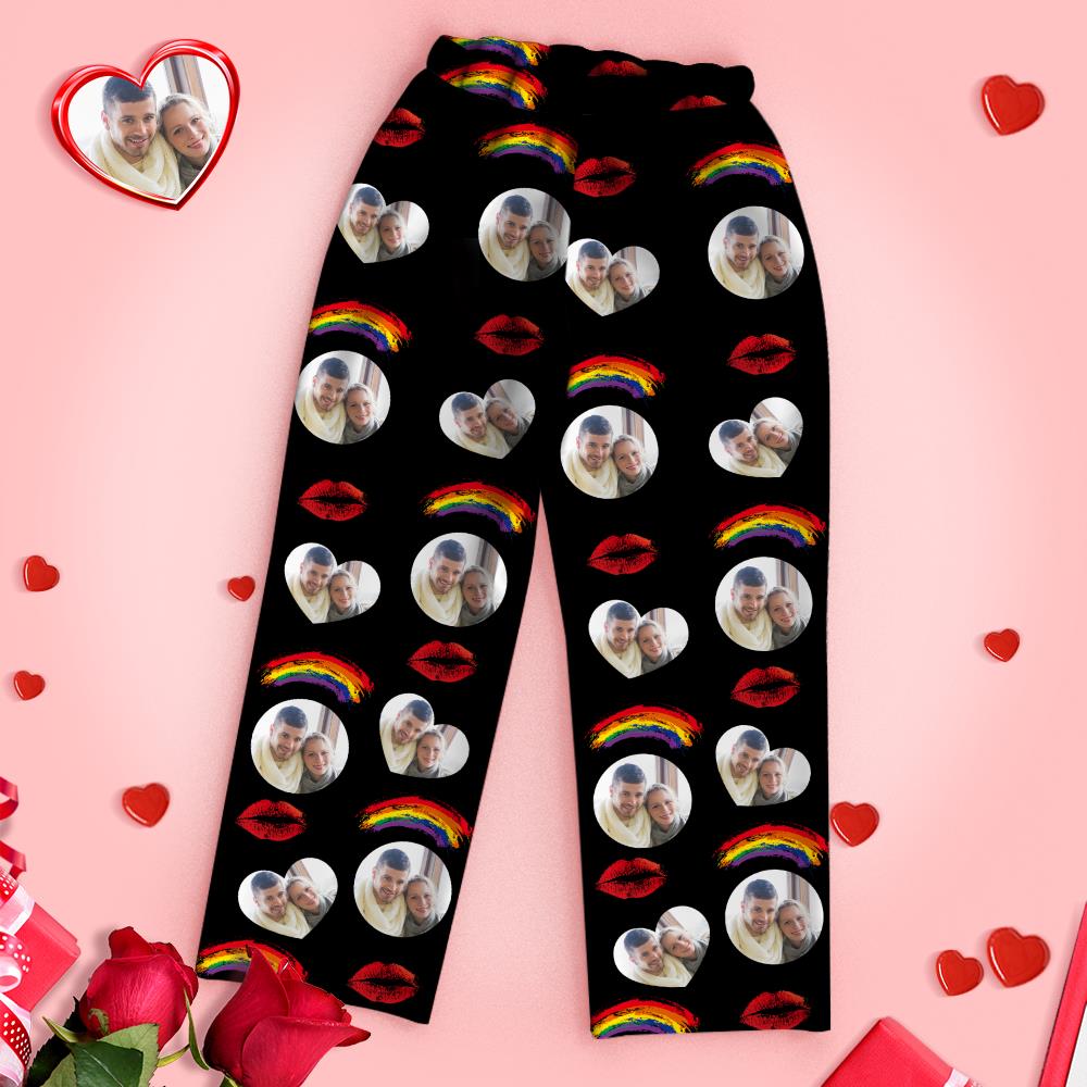 Custom Photo Lip Print And Rainbow Pajamas Long Sleeve Pajamas