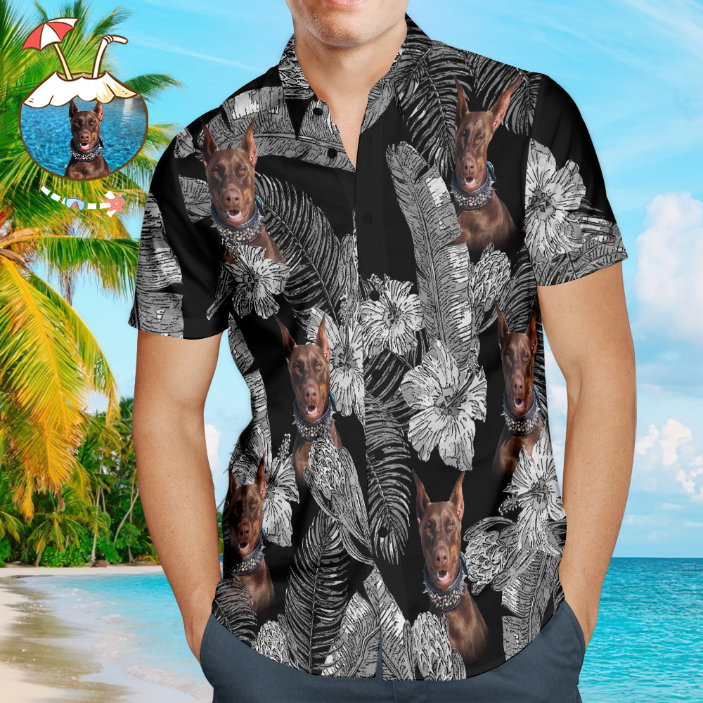 Custom Face Hawaiian Style Large Leaves Dog and Owner Matching Hawaiian Shirts