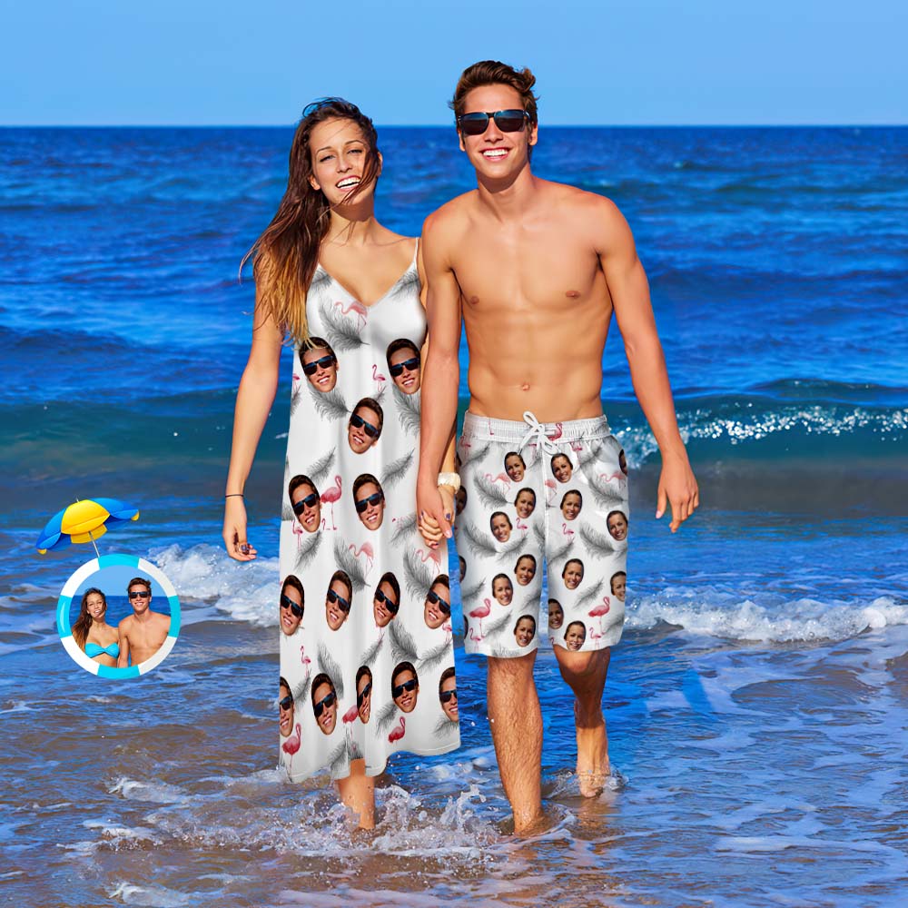 Custom Face Couple Matching Outfits Flamingo Beach Wear Set