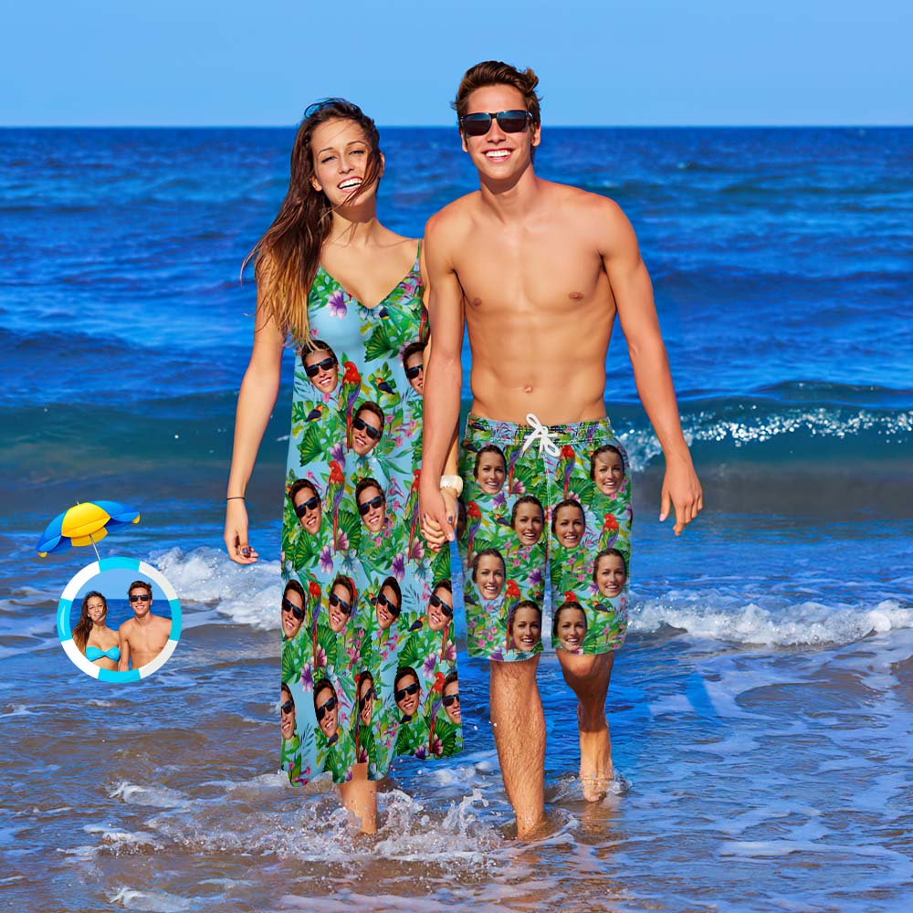 Custom Face Couple Matching Outfits Parrot Beach Wear Set