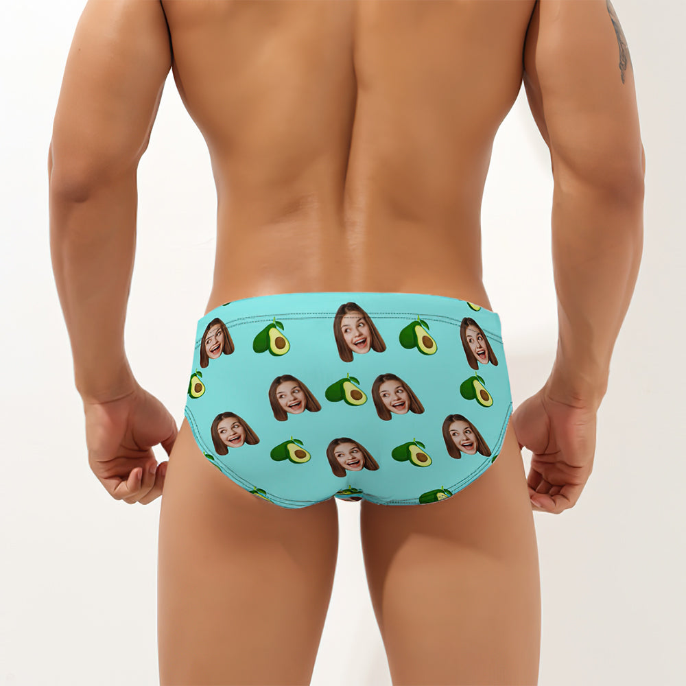 Custom Face Hawaiian Style Men's Swimming Trunks Personalized Avocado Triangle Swim Briefs