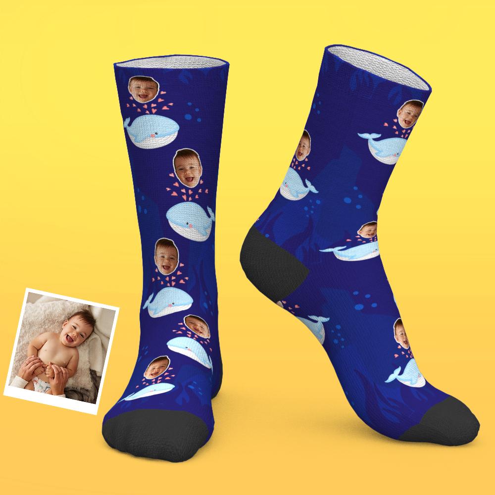 Custom Face Beach Background Socks With Dog Paw Prints Gifts For Dog Lovers