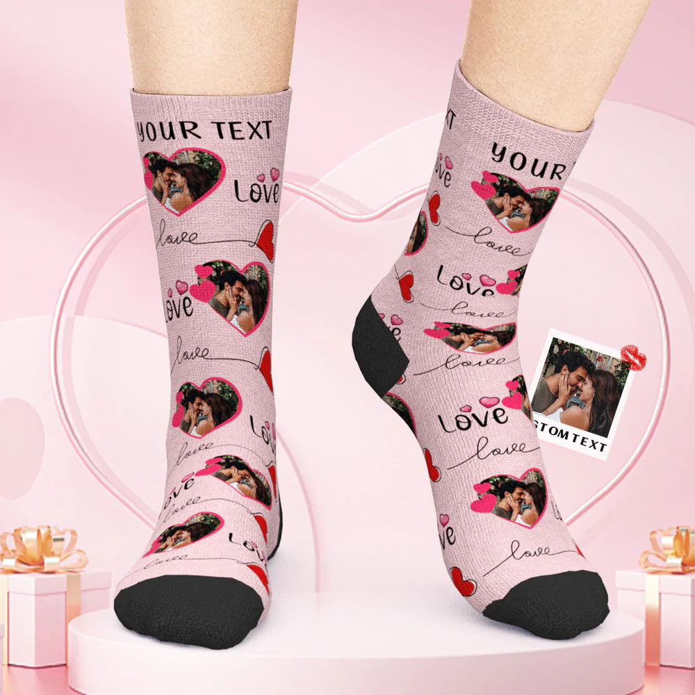 Custom Red Heart Face Socks Personalized Valentine Day Socks with Photo Cute Heart Pattern Couple Gift Idea
