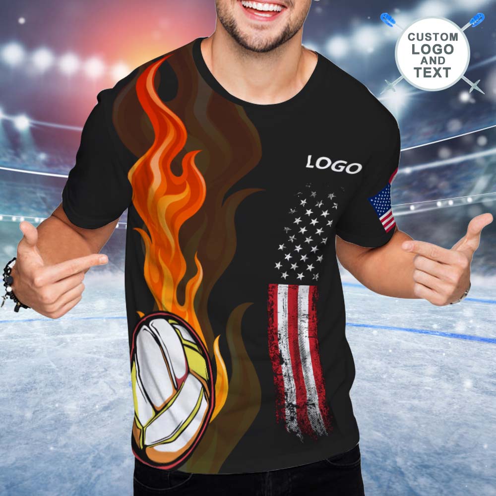 Custom Logo and Text Volleyball Flame T-Shirt Best Volleyball T-shirt For Men