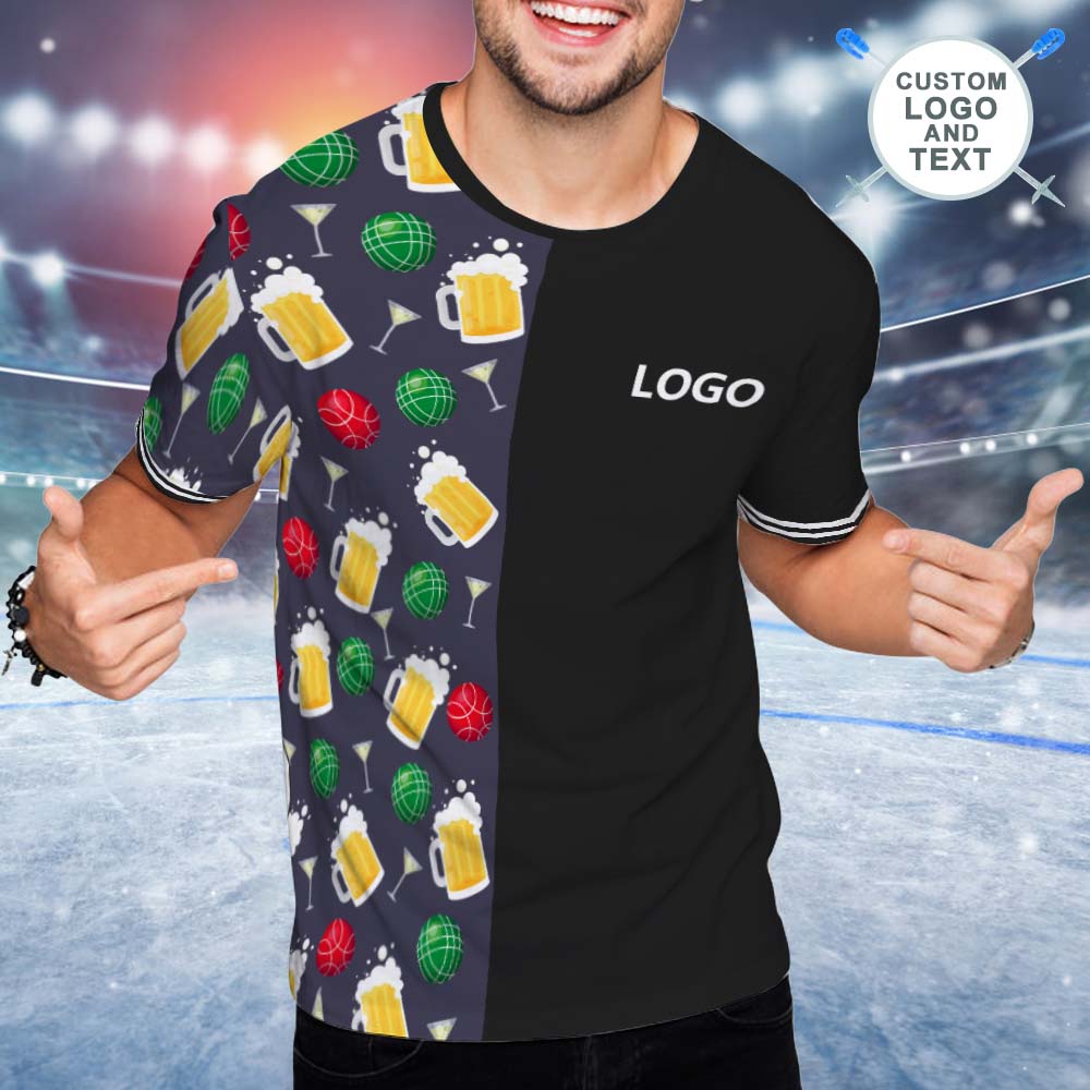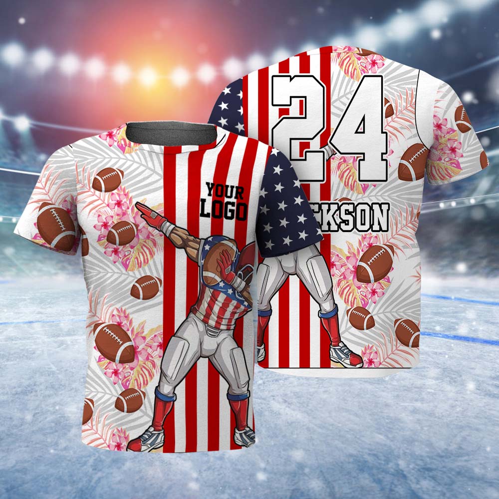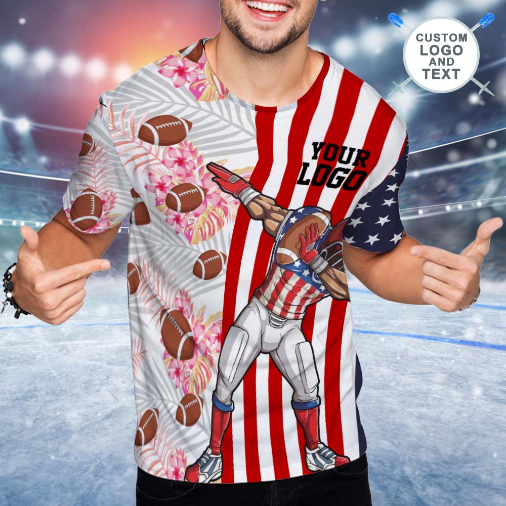 Custom Logo and Text T-shirt Football And Skull Short Sleeve Custom Mens T-shirt