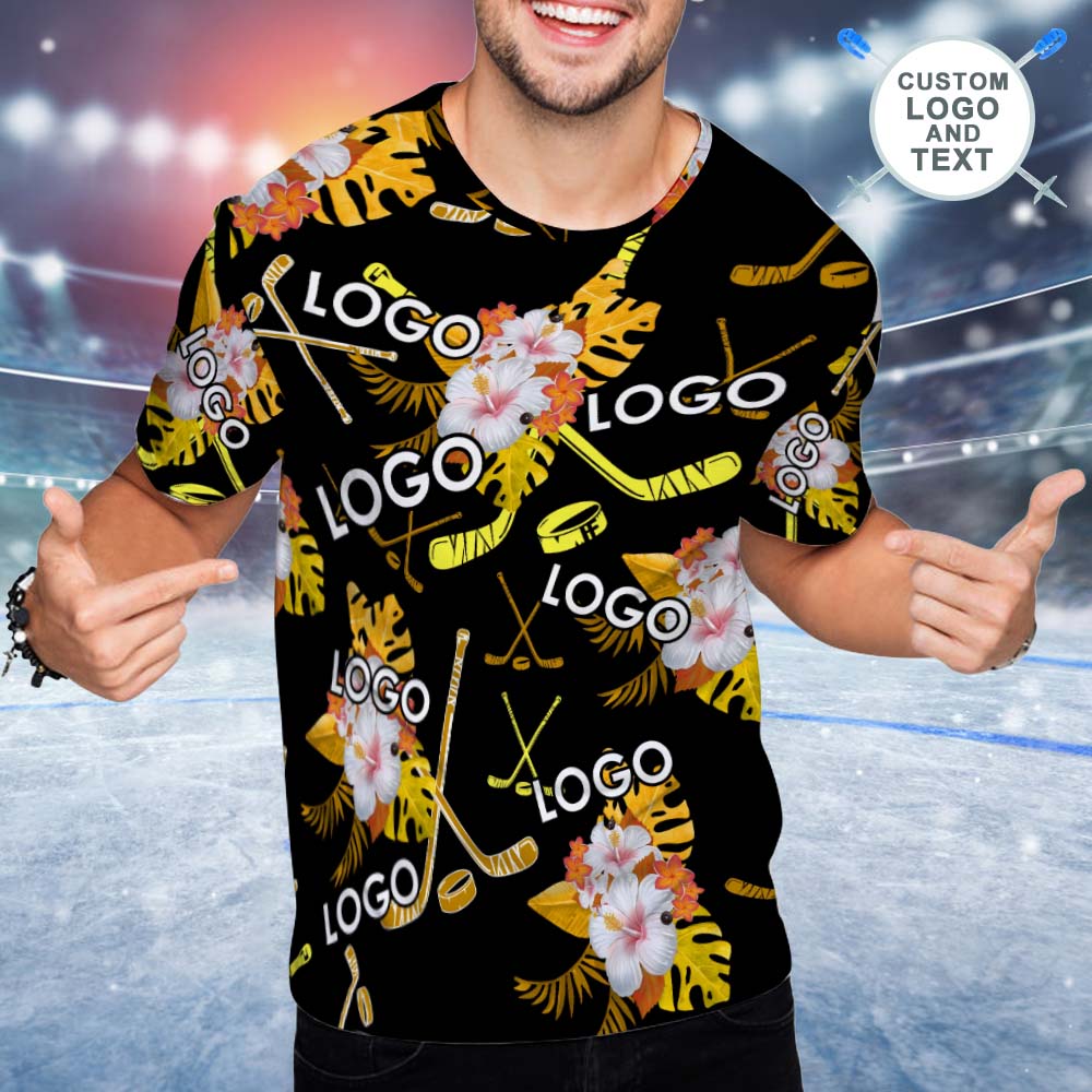 Custom Mens Logo and Text T-shirt Hockey Tropical Black and Yellow T-shirt
