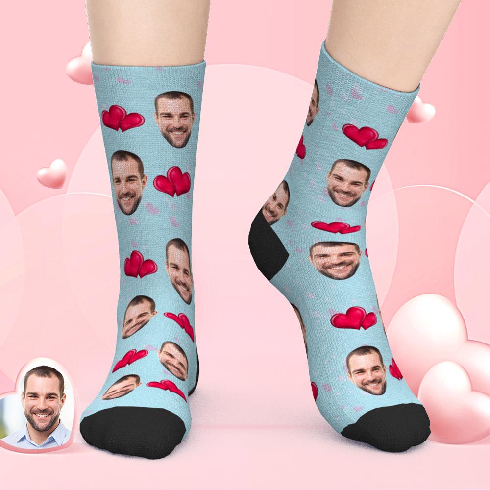 Custom Red Heart Face Socks Personalized Valentine Day Socks with Photo Cute Heart Pattern Couple Gift Idea