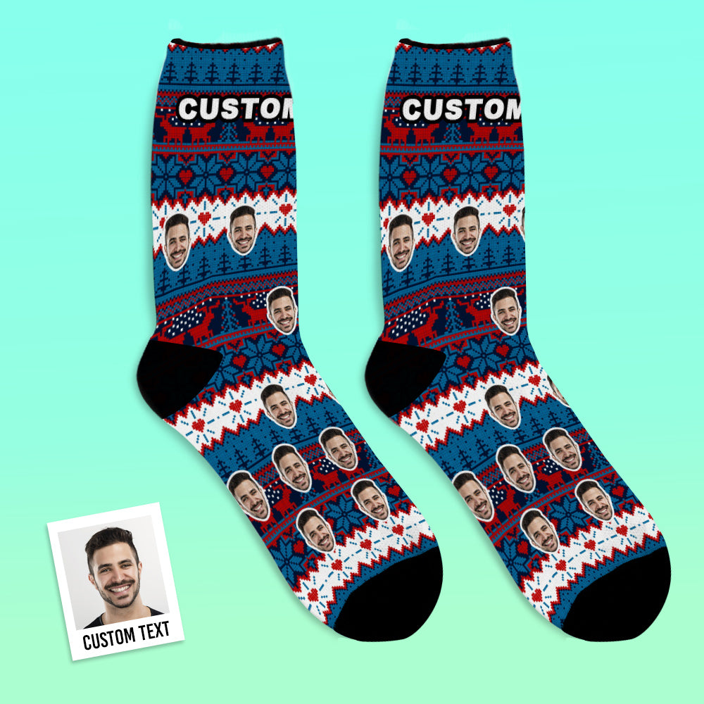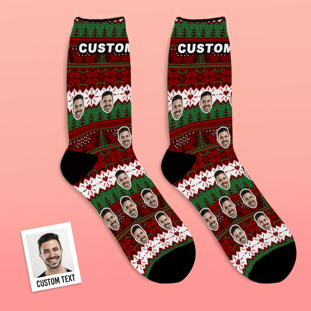 Custom Photo Socks Christmas Socks Christmas Knitted Pattern Design Holiday Socks