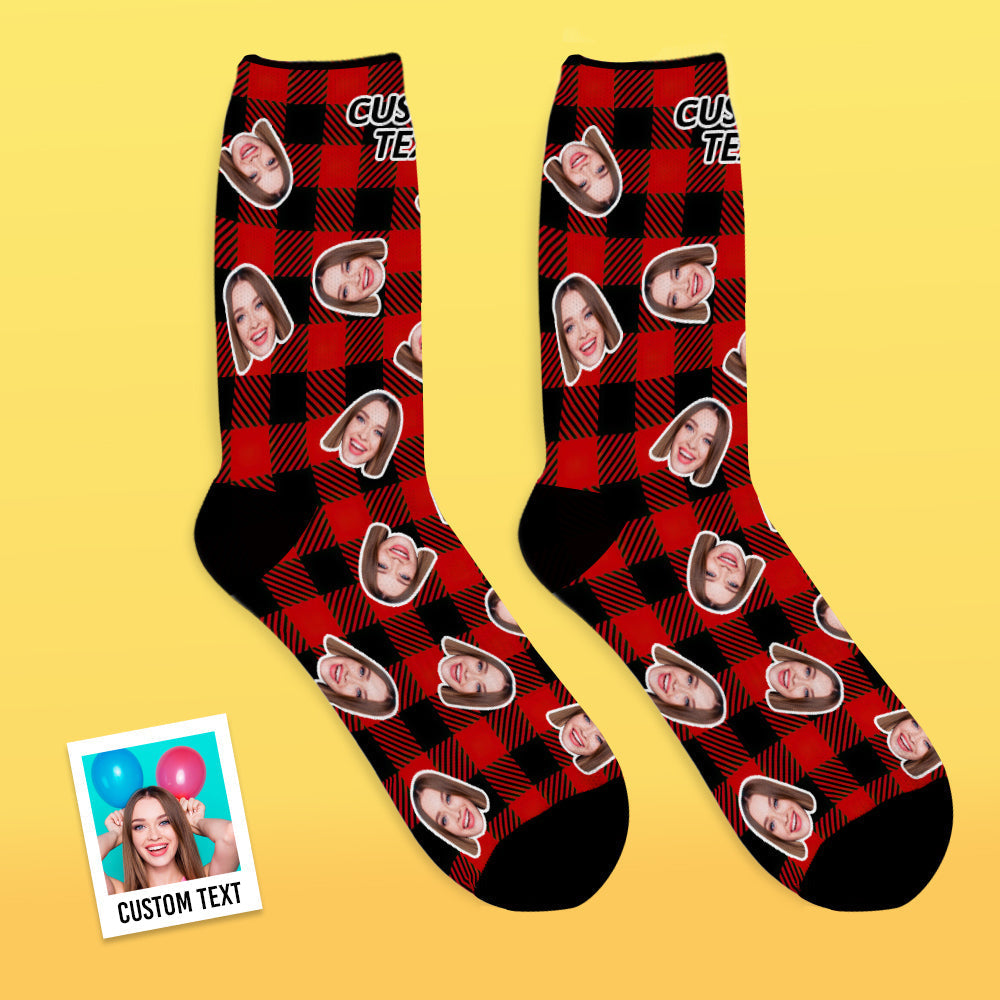 Custom Photo Socks Red Plaid Print Personalized Gift