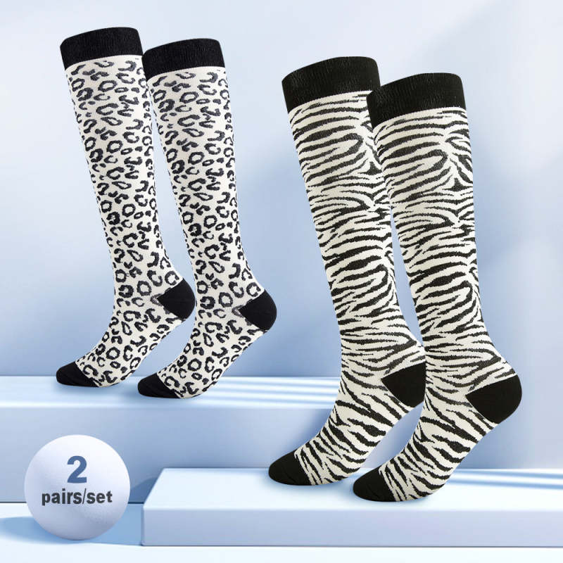 2 Pairs/pack Compression Socks Women Men Knee High Animal Print Sports Socks