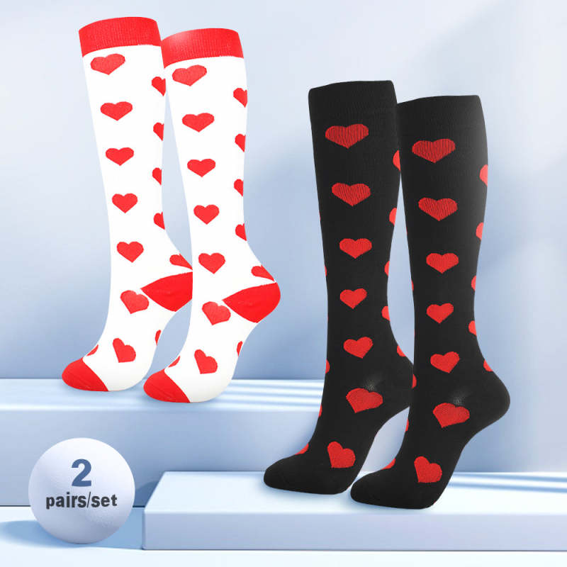 2 Pairs/pack Compression Socks Women Men Knee High Heart Series Sports Socks