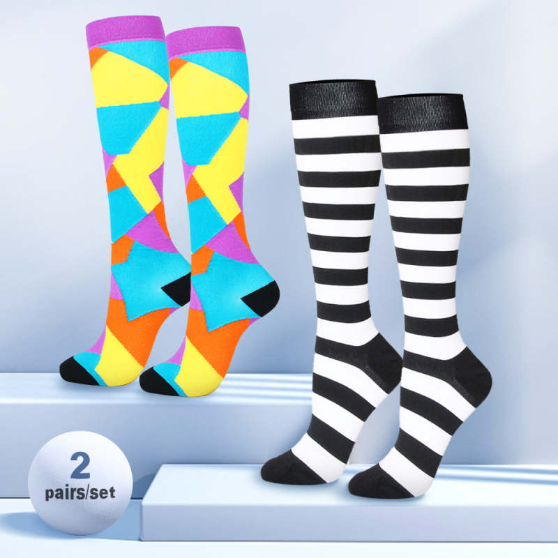 2 Pairs/pack Compression Socks Women Men Knee High Striped Color Block Sports Socks