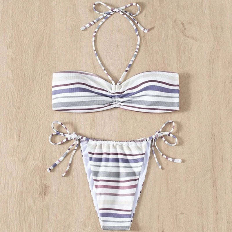 Bikini Stripe Split Sexy Lace-up Swimsuit