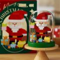 Each dome features a delightful holiday scene - a cheerful Santa Claus and a beautifully decorated Christmas tree - carefully crafted from colorful mini blocks.