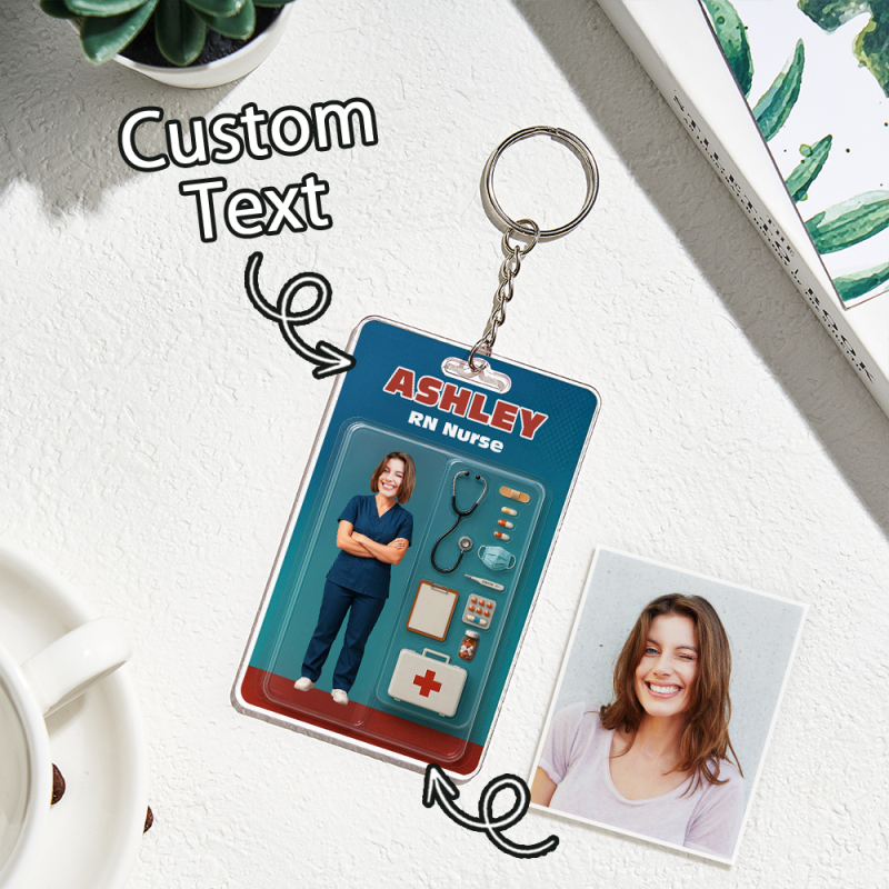 Custom 3D Effect Action Figure Customizable Head Packaging Toy Box Style Art Gift Personalized 2D Printing Acrylic Keychain Nurses Day Gift for Nurse