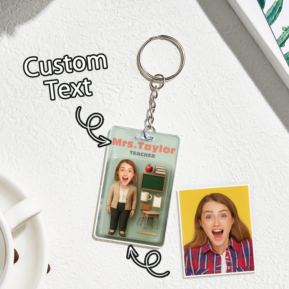 Custom 3D Effect Action Figure Customizable Head Packaging Toy Box Style Art Gift Personalized 2D Printing Acrylic Keychain Creative Gift for Teacher