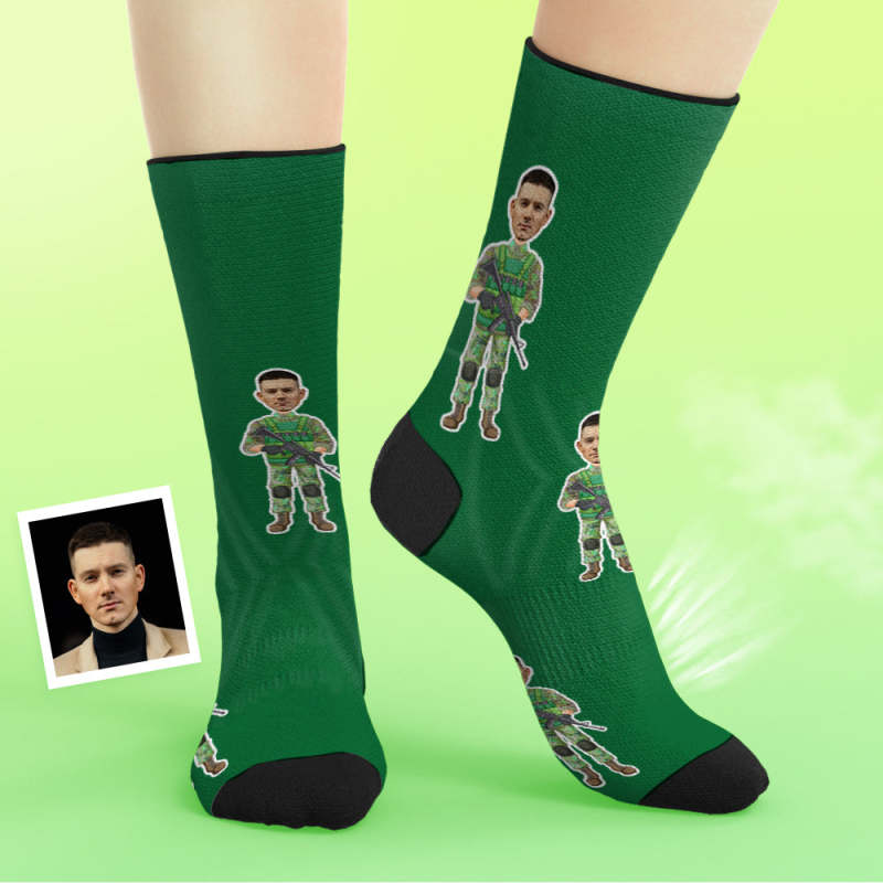 Custom Breathable Face Socks Army Gift Custom Face Socks