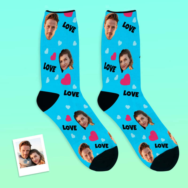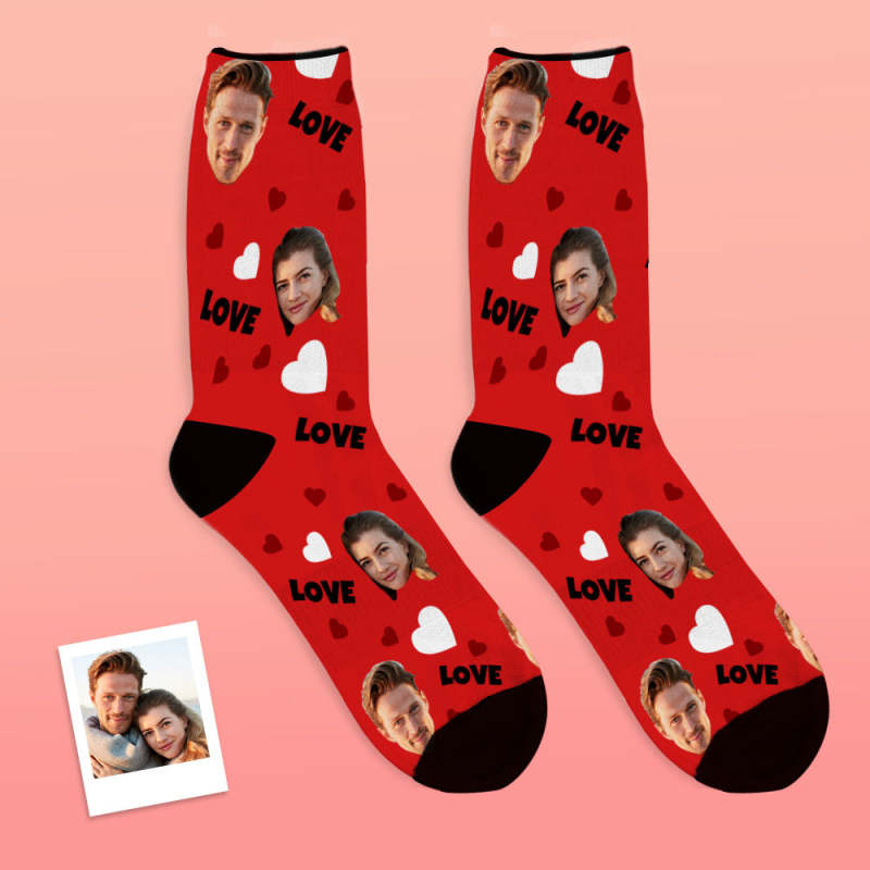 Custom Breathable Face Socks Heart And Love Personalized Photo Socks
