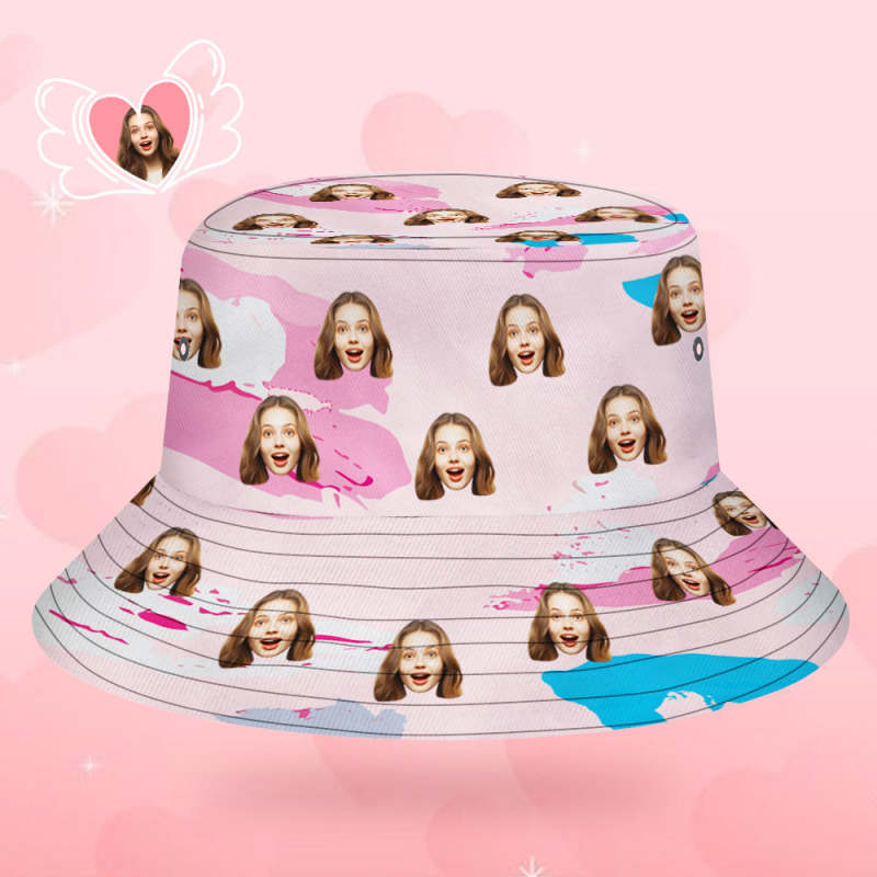 Custom Bucket Hat Unisex Face Bucket Hat Pink Geometric Printing Bucket Hat