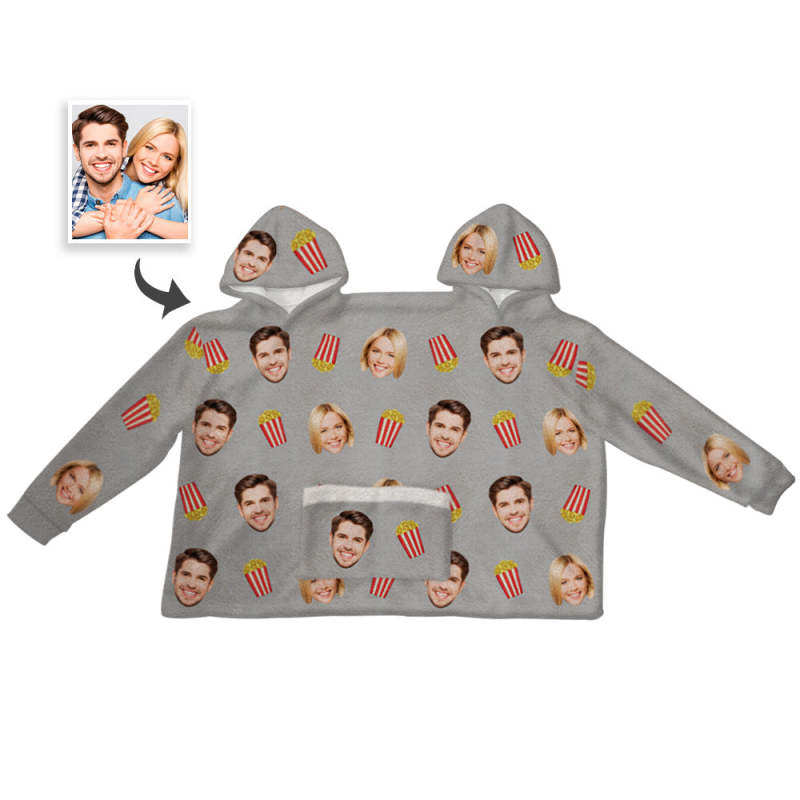 Custom Couple's Photo Jumpsuit Pajamas Warm And Intimate One-Piece Loungewear Blanket Funny Valentine's Day Gift