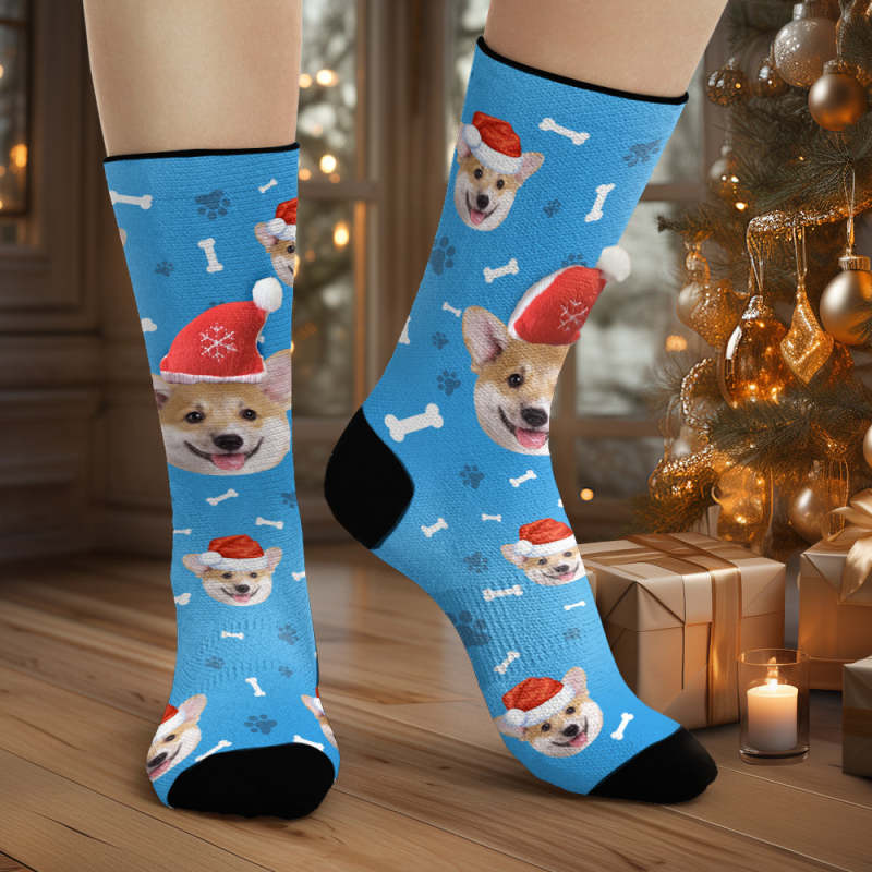 Custom Face Design: Make a statement with personalized socks that showcase your pet face adorned with a 3D Santa Hat. Transform your ordinary socks into a festive and unique accessory.