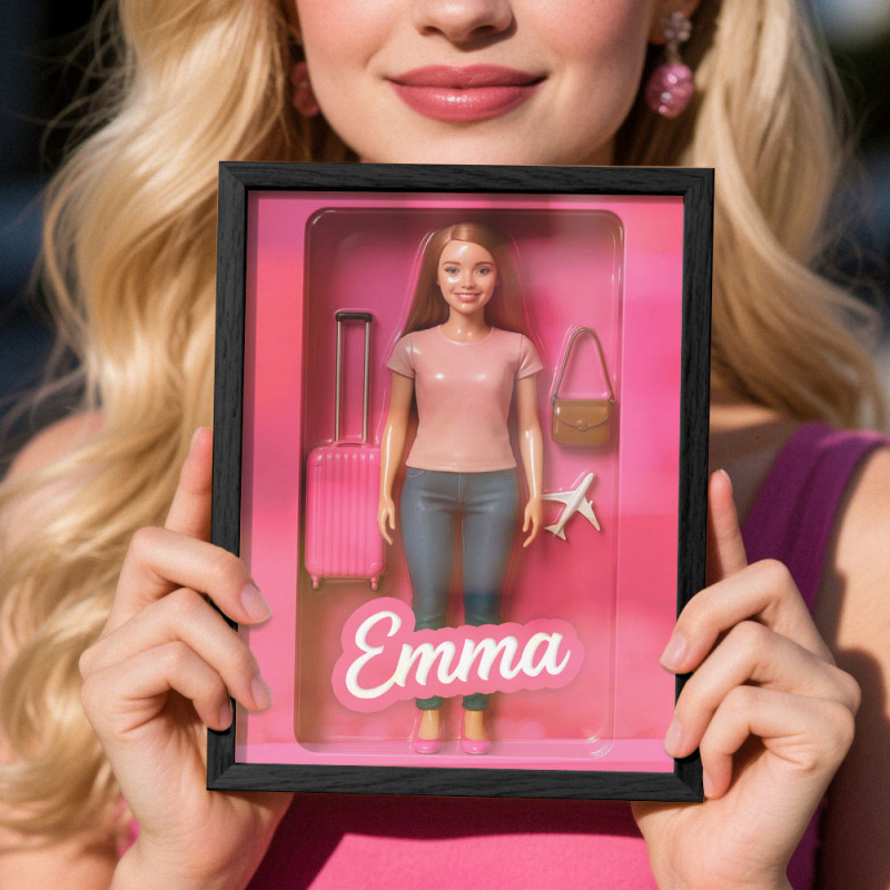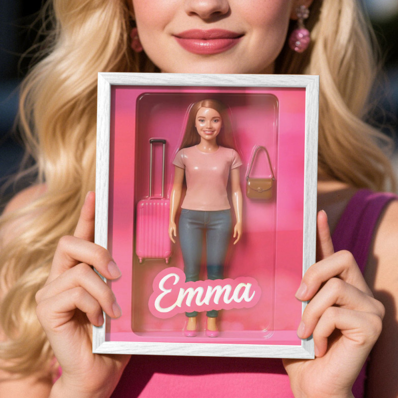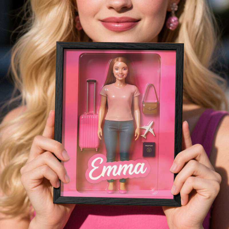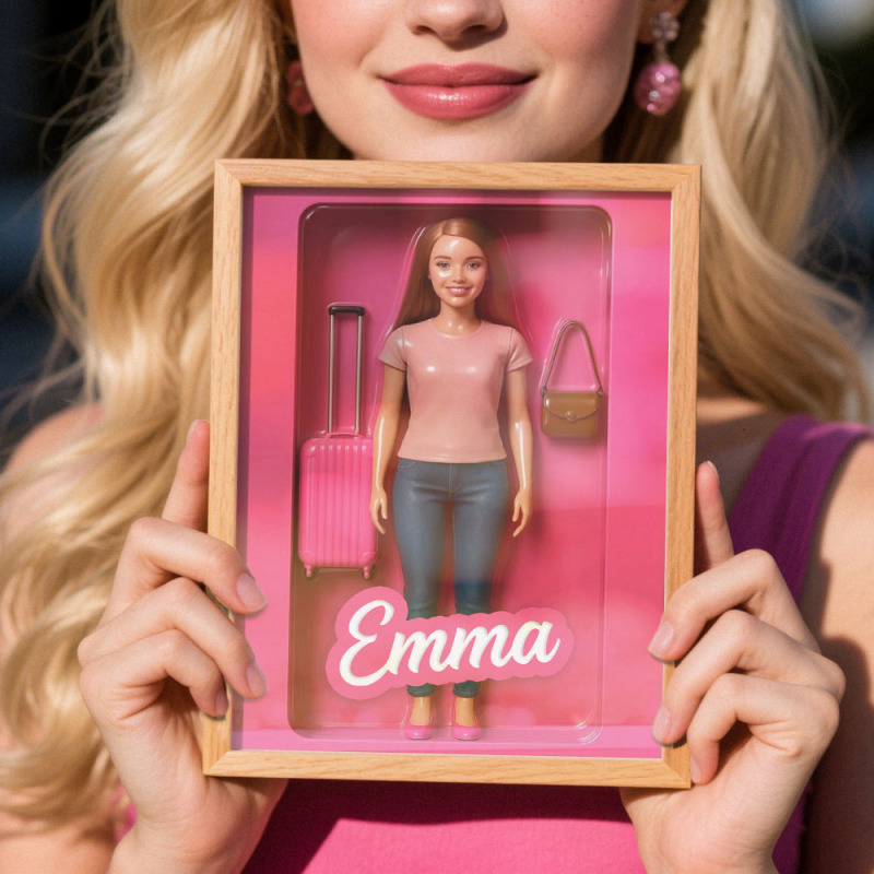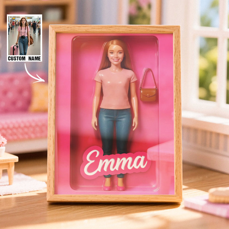Custom Doll-Inspired Display Gift – Personalized Mini You in Framed Box with Name & Outfit