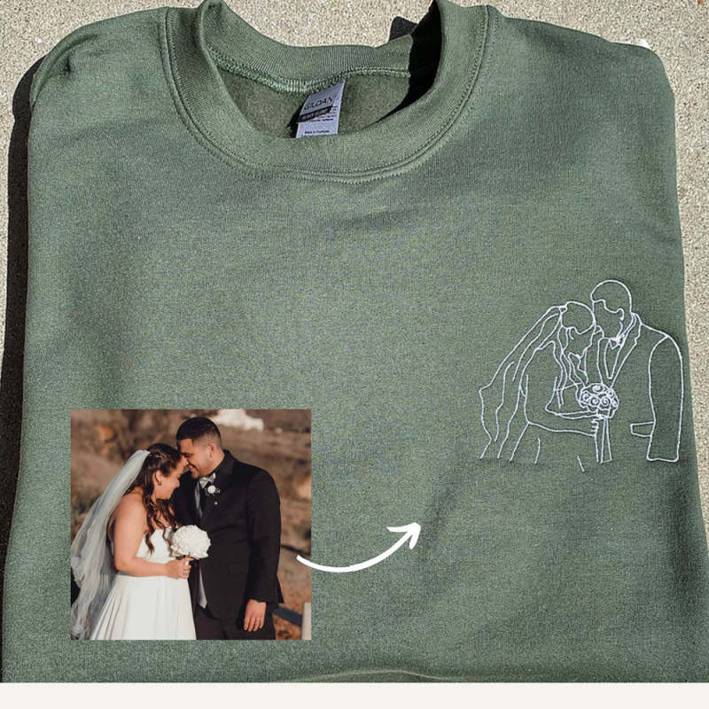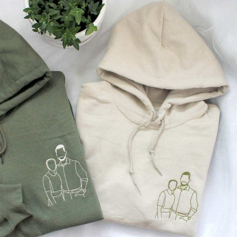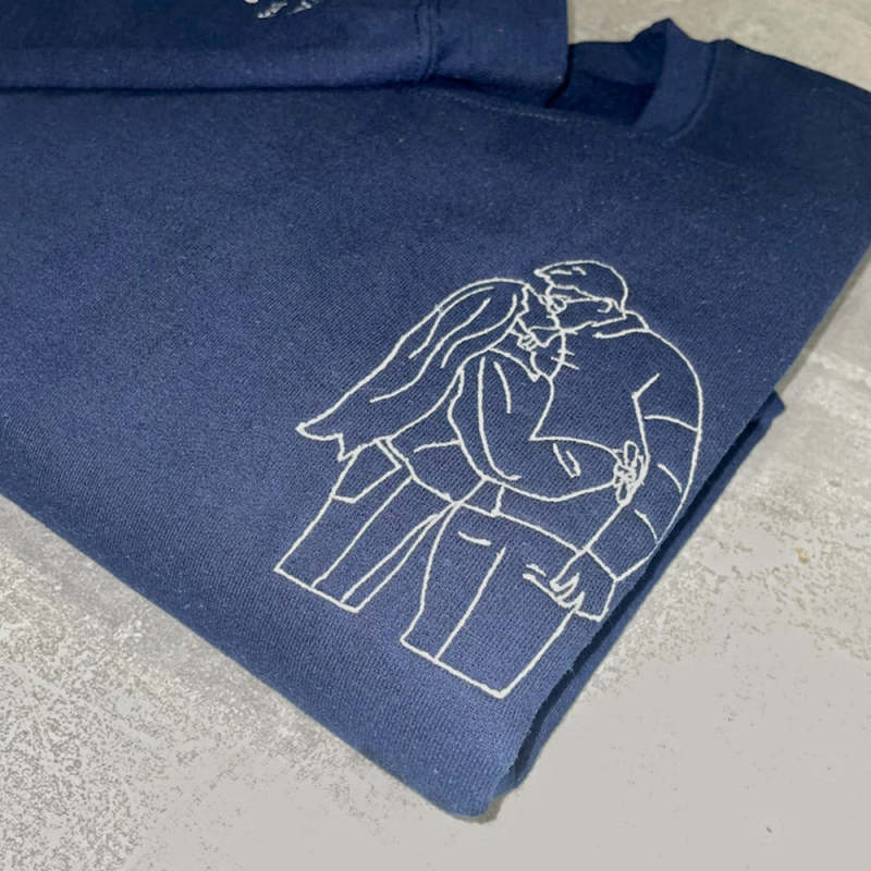 Custom Embroidered Pocket Portrait From Photo Outline Photo Sweatshirt Personalized Photo Couple Hoodie Gift For Bf
