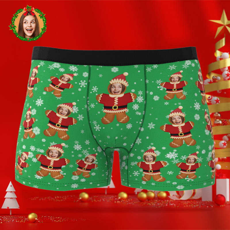 Custom Face Boxer Gingerbread Man Personalized Christmas Boxer Briefs
