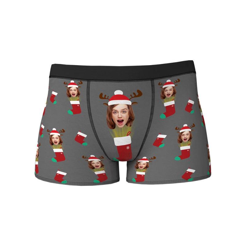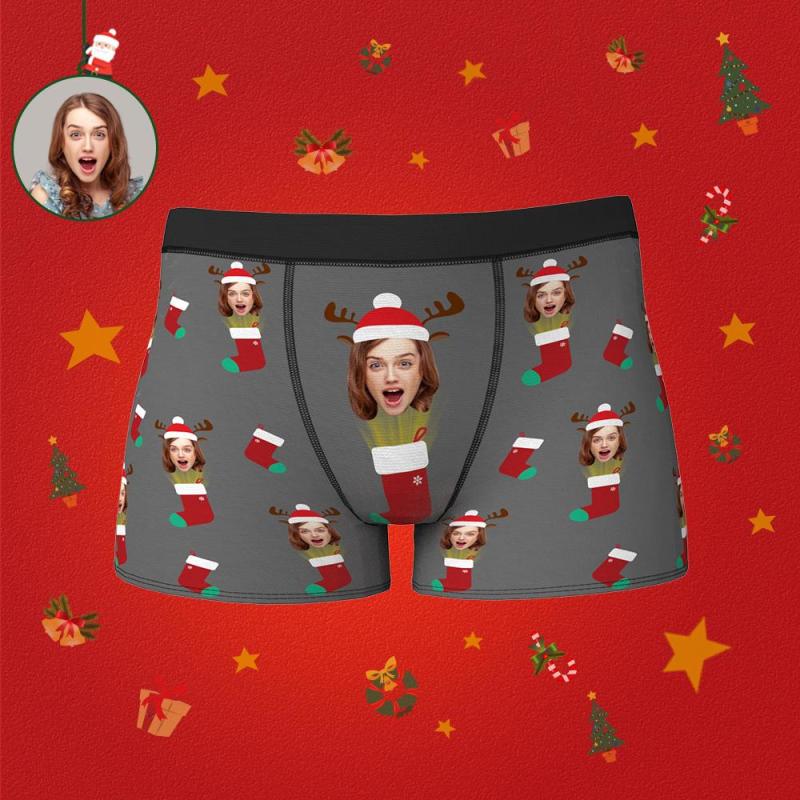 Custom Face Christmas Boxer Men's Boxer Briefs Christmas Socks Surprise Gift
