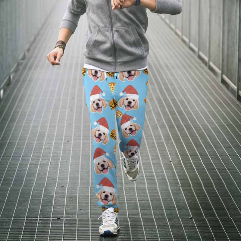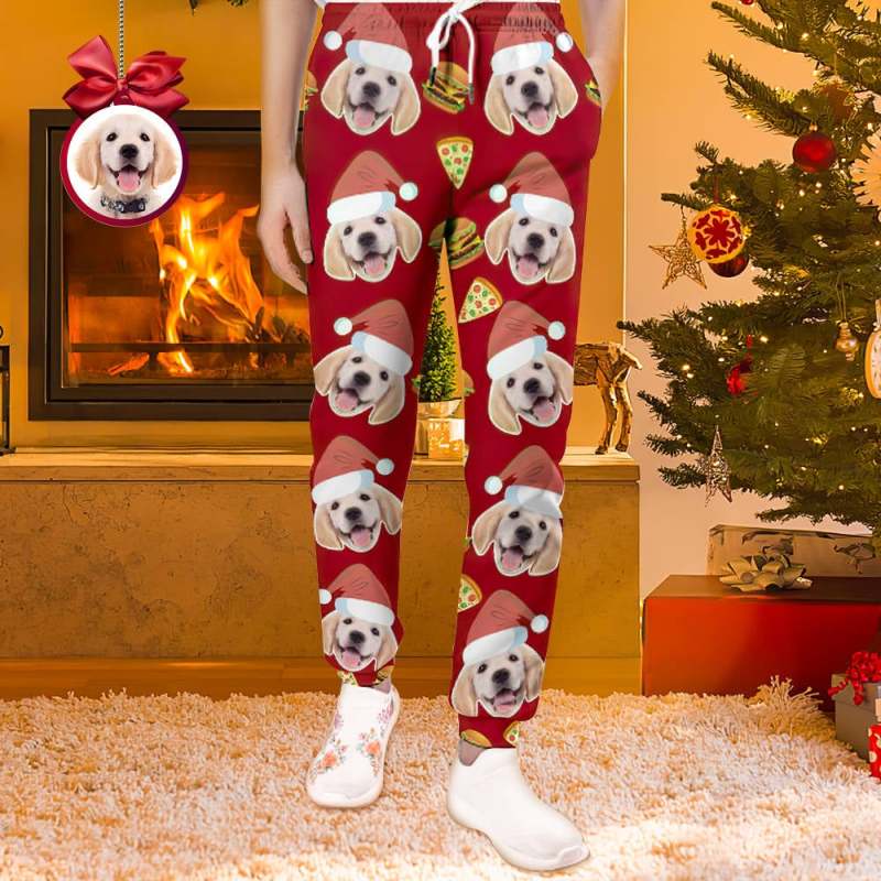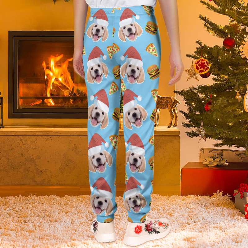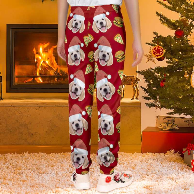 Custom Face Christmas Sweatpants Unisex Joggers with Pizza and Burger