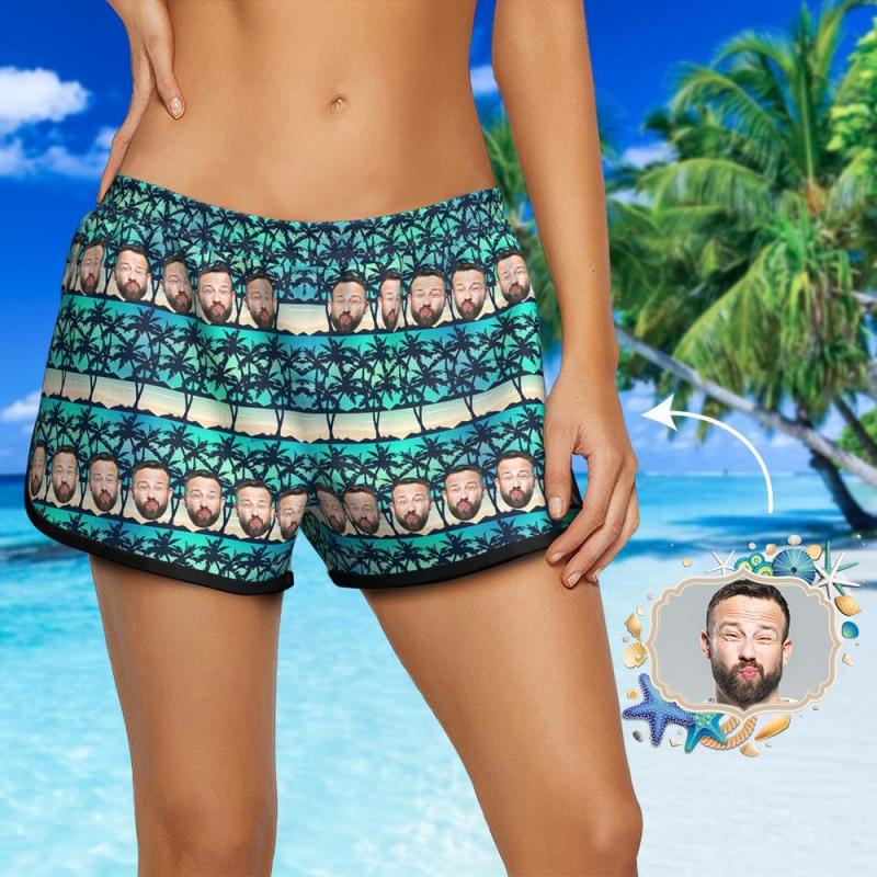 Custom Face Coconut Tree Women's Casual Yoga Shorts Personalized Photo Beach Shorts