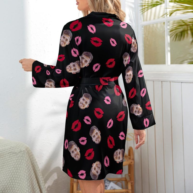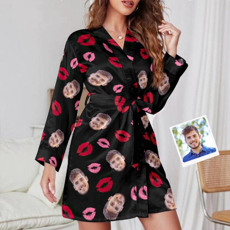 Custom Face Colorful Lip Printed Long Sleeved Nightgown
