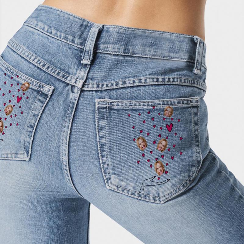 Custom Face Flared Stretch Jeans Heart And Face On Hands
