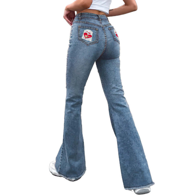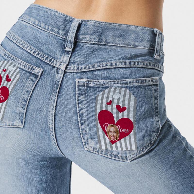 Custom Face Flared Stretch Jeans Heart Gift Tags Photo Labels